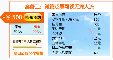 我院开展多项人流手术,包括无痛人流,超导可视无痛人流,3毫米微管可视无痛人流,双腔减压无痛人流。选择手术方式不一样价格存在一定的差异,不过网络预约即可享受多项费用优惠!